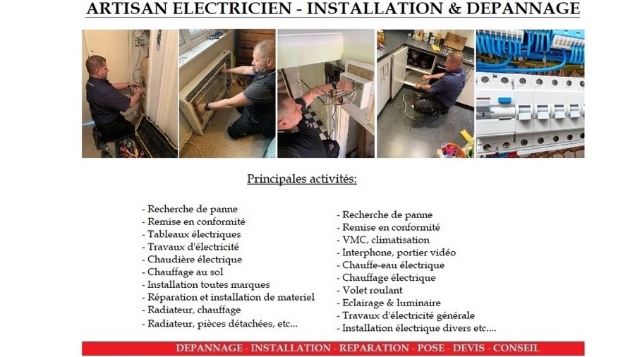- Installation d'équipements électriques tels que Legrand, Hager ,Schneider